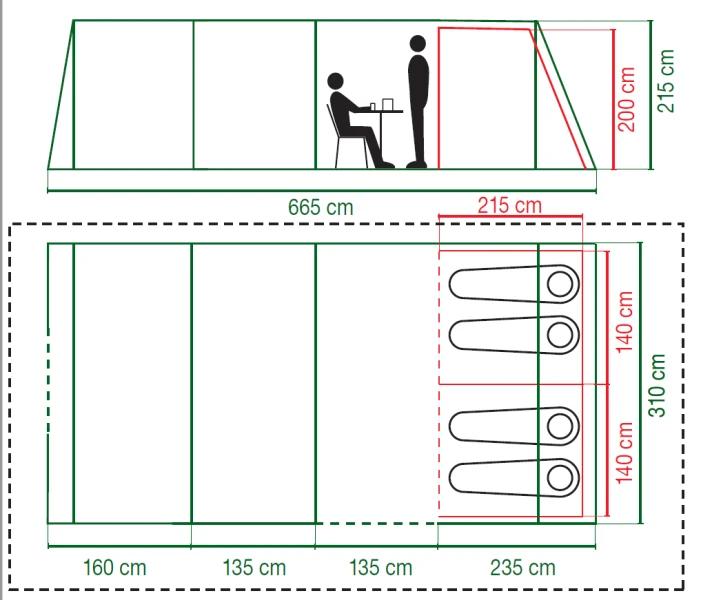 - Zipped Inner Bedroom Dividers – Provides flexible sleeping options, allowing you to split bedrooms