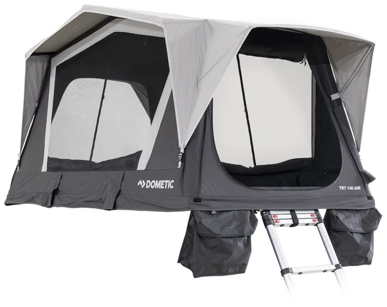 The Dometic TRT 140 Air Roof tent has really broken the mould of what a Roof Tent can do! Not only is the Roof Tent inflatable, but the all-new tri-folding design means that the pack size is unlike anything else on the market. One of the biggest benefits of the compact pack size is that it paves the way for how many different vehicles it can be used on as the tent sits the opposite way around to a conventional Roof tent, making the attachment span a lot smaller than others. A PVC storage/transit cover is included with the tent to keep everything dry and together.
