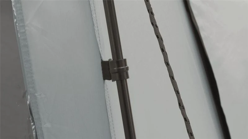 The overall size of the shelter is 2.9m x 2.9m, so is quite generous in space and the Lounge still retains a small pack size making it perfect for a family on the move. Ground webbing straps are positioned from edge to edge, this is to make sure that tent is setup correctly while adding a bit of stability. Two storage pockets are located around the edge of the tent so that you can declutter the shelter. In the roof of the Day tent are two large ventilation panels to help increase airflow and reduce condensation.