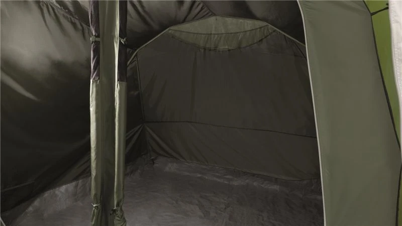 The bedroom compartment is made from Easy Camp’s sleep tight material to reduce early morning light and hopefully not wake you up when the sun rises. The Inner also has storage pockets built into the tent allow you to locate torches and phones in the middle of the night. Windows are located on either side of the tent to give a view outside and curtains can toggle up into place to provide privacy when needed. Covered ventilation panels are located behind the bedroom section at each end of the tent to increase airflow and help reduce condensation. A toggled inner divider splits up the bedroom section and can be easily removed to make one big sleeping space.