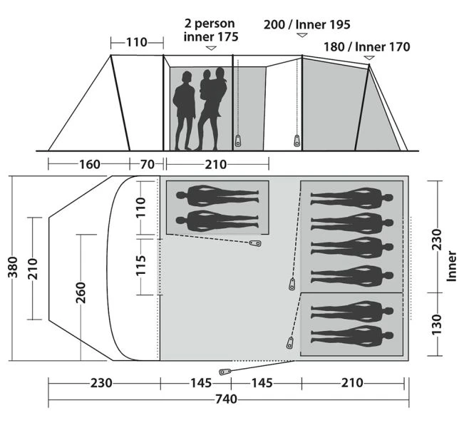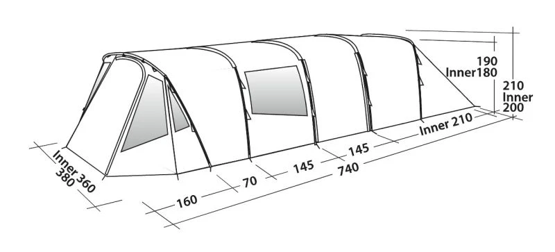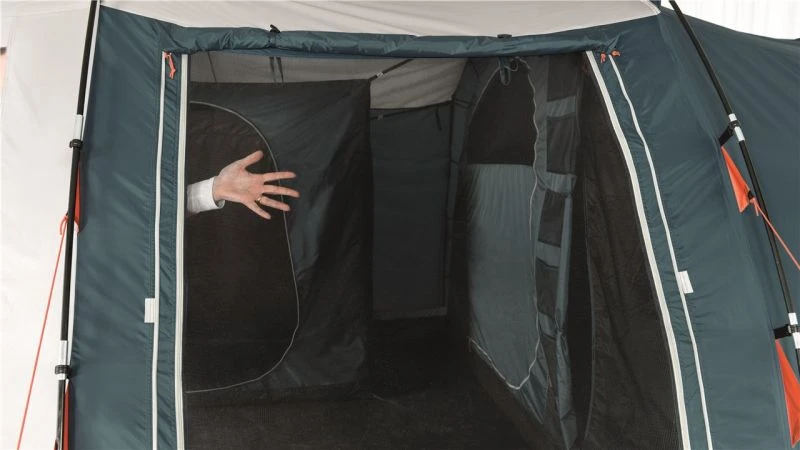 A drop-down front door into the living area gives trip free access into the tent and makes it easier for pushchairs to enter. This same entrance has a mesh door built into it so you can increase the airflow inside the tent without having any insects join the party. The pre-angled poles help to increase the internal headroom and make the awning feel more spacious in relation to the floorplan.
