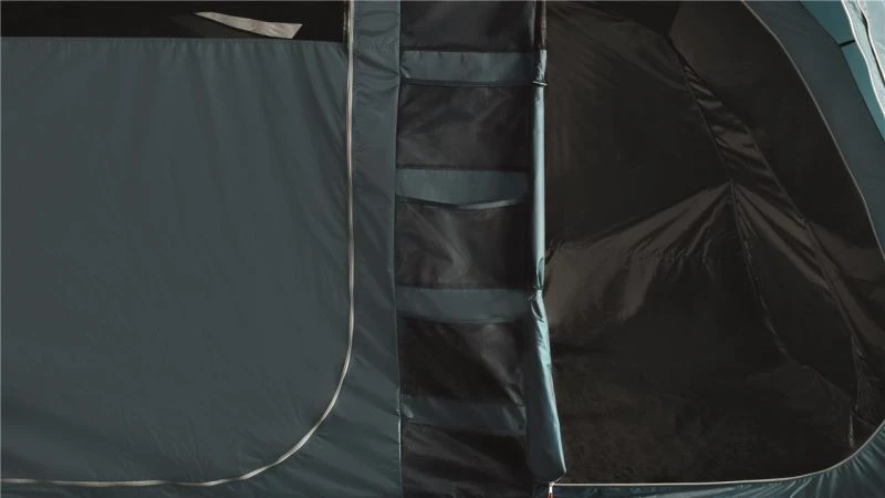 A solid 3,000mm HH waterproof rating is a great spec for the price point and as it has a sewn-in groundsheet the tent inside is sealed away from the wind and rain. Colour co-ordinated poles make it easy to pitch, as seen from our Attwoolls Pitching videos. The bedroom compartment is made from Easy camp’s sleep tight material to reduce early morning light and hopefully you don’t wake you when the sun rises. The inner also has storage pockets built into the tent to allow you to locate torches and phones in the middle of the night. Windows are located on either side of the tent to give a view outside and curtains can toggle up into place to provide privacy when needed. Covered ventilation panels are located behind the bedroom section at each end of the tent to increase airflow and help reduce condensation. A toggled inner divider splits up the bedroom section and can be easily removed to make one big sleeping space.