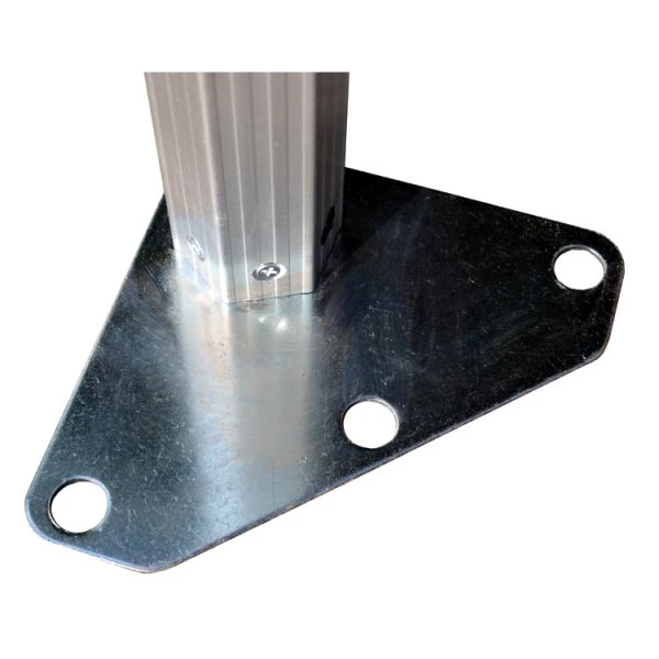 - Hexagonal profile industrial alloy tubing, 58mm diameter / Internal concertina x-bars ribbing / Galvanised steel footplates / 5 position height adjustment in 75mm increments, Min. height (valance): 190cm, Max height (valance): 220cm, Min. height (apex): 327cm, Max. height (apex): 357cm / Quick release pull-pin brackets / Cast alloy brackets / No plastic brackets / Canopy securing bolts / Supplied with H/D cover bag or optional H/D wheeled storage bag / Supplied with H/D camlock straps & stakes