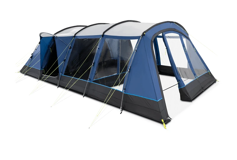 At the rear you’ll find the large bedrooms, in a 2+2+2 configuration and in front of these is a large living area with a fully sewn-in groundsheet keeping the weather and bugs at bay. The front of the tent offers a truly flexible space, it can be incorporated into the main living area to give an exceptionally large interior area or it can be divided off to create another room. Rolling back the front panel makes a large sun canopy. It is also a great area for kicking off your shoes before entering the main living area.