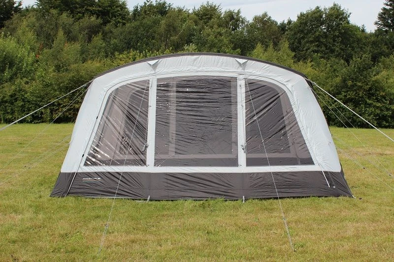 he Outdoor Revolution Airedale 7SE & 9SE Front Extension is designed to zip on to the front of this model, in order to considerably extend usable living or storage space from the integral porch area, providing a windowed utility space for cooking or relaxing, with an excellent vista of the outside world and complete protection against the elements, to maximise enjoyment on rainy days. This tunnel canopy incorporates our famed oxygen airframe inflation system, utilising a single inflation point dynamic speed valve, making pitching swift and effortless; an exclusive pressure relief valve prevents damage to the tube by expelling any excess air, typically caused by overinflation or sudden changes in the ambient temperature. All of our valves are discretely concealed by a velcro cover. We have also included numerous high visibility guylines and a compact carry bag with this accessory.