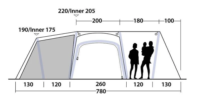 - Type of tent:Â Â Â Â Â Three-room tunnel tent