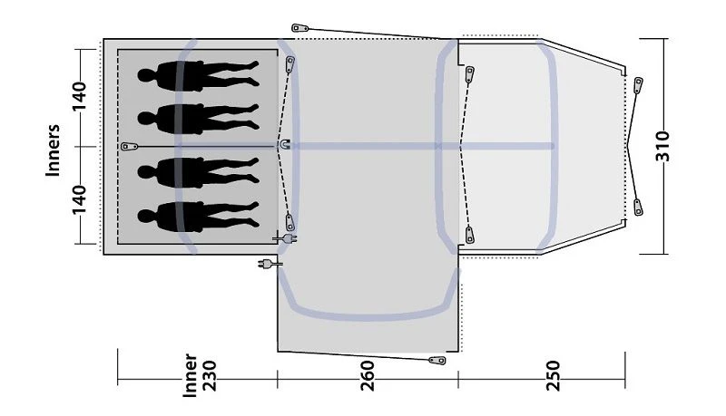 - Cable entry points to allow the electric hook to be in the tent without leaving a door openÂ