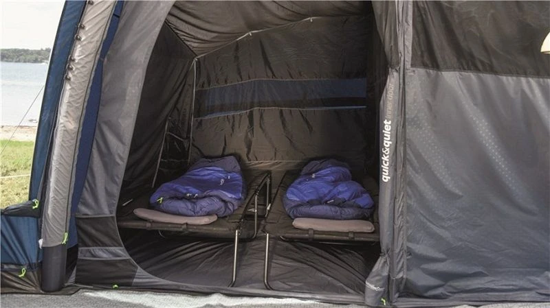 This tent actually has certain features that you don’t see in other brands tents, such as Outwells new HookTrack System which allows you to create a hanging point anywhere along the beam and because the Hook simply clips on, it has never been easy to hang a light or a storage unit. There is also Outwell’s new quick & quiet bedroom which give you easy access to the bedroom compartment without making a noise.