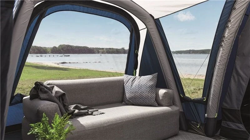 The internal height of the Airville is immense regardless of how tall you are and this is because of Outwell’s Gothic Arch style air tubes, it also helps to create greater use of floor space which makes the tent feel bigger than it actually is. Throughout the tent there are beautifully large tinted windows which allow plenty of light to flood in while giving an element of privacy, curtains are in place in every window to take that privacy to the next level and keep the sunlight from waking you up.