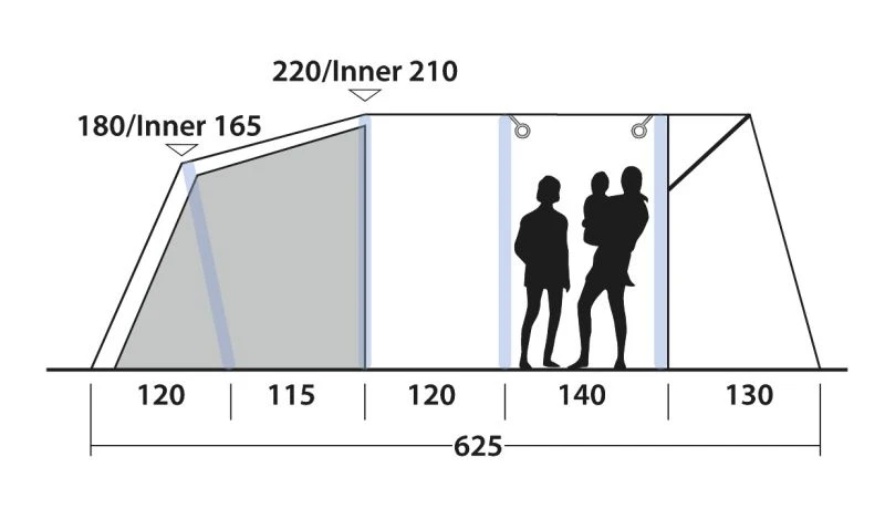 - Reliable, easy-to-operate inflate/deflate valves conveniently placed outside the flysheet