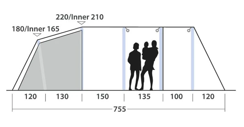 This tent actually has certain features that you don’t see in other brand’s tents, such as Outwell’s new HookTrack System which allows you to create a hanging point anywhere along the beam and because the Hook simply clips on, it has never been easier to hang a light or a storage unit. There is also Outwell’s iconic ‘Quick & Quiet’ bedroom access which give you easy access to the bedroom compartment without making a noise; this feature is also now on the living room door.