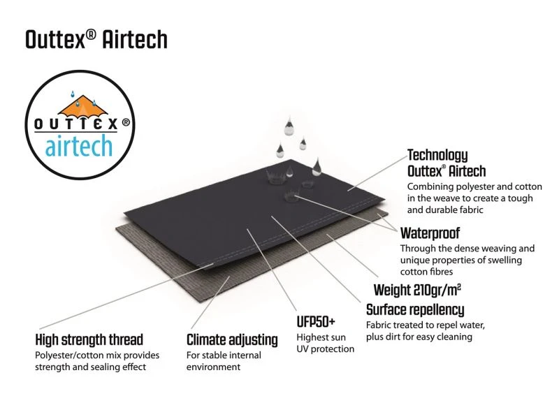 - Flysheet: Outtex® Airtech, 65% polyester / 35% cotton