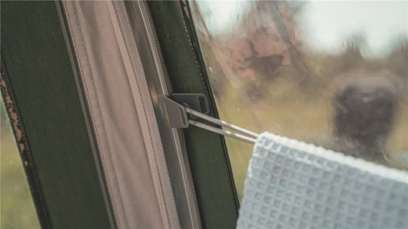- Large tinted windows, with zip-up curtains, block sun glare, ensure privacy and allow campers to stay in touch with the outdoors
