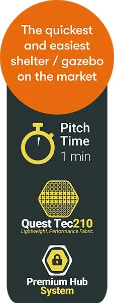 The Quest Elite Instant Spring Up Screenhouse 4 is a quick erect, pop up shelter. This is a multi-use gazebo screen house or event shelter, perfect for entertaining in the garden, for use at outdoor events or as a covered social area when camping.