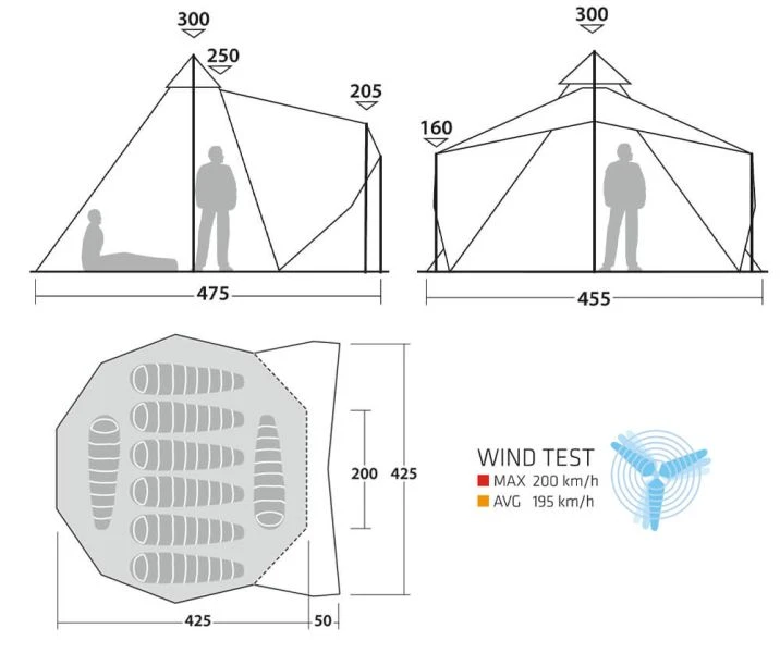 - Windtest max: 200km/h