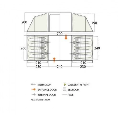 - Vango AirZone – High and low level ventilation panels combine to create a comfortable flow of air through the tent. Air circulation is essential for reducing condensation