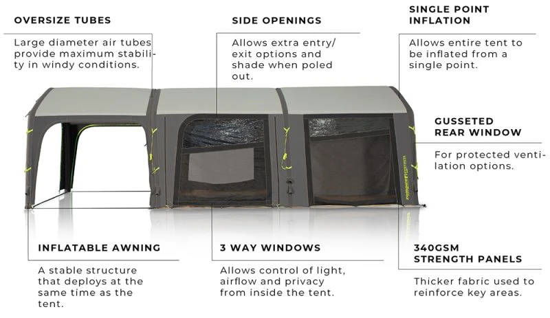 We see the Fortress V2 Air Tent as Zempire’s flagship tent and it has every feature available. We expect to see a lot of campers with the Fortress on permanent pitches throughout the summer.